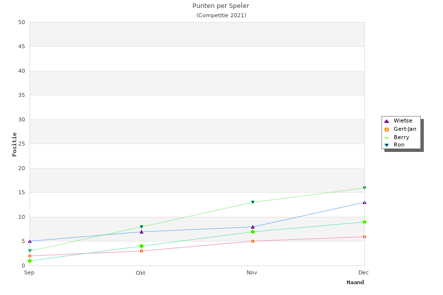 | Racing | Ron | 21 | Wietse | 20 | Berry | 15 | Gert-Jan | 10 |