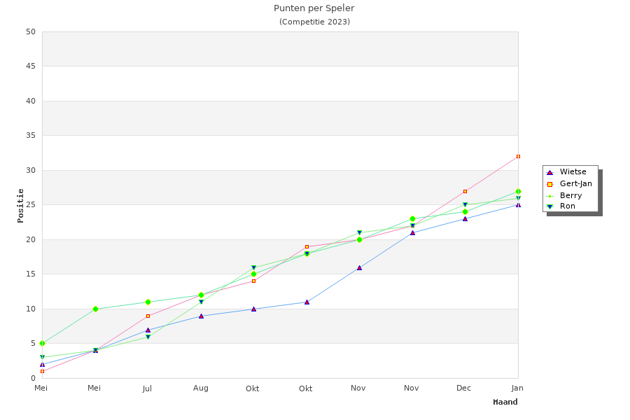 | Fantasy | Ron | 80 | Wietse | 54 | Gert-Jan | 52 | Berry | 48 |